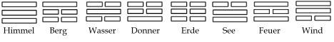 Die 8 Trigramme; ihre Reihenfolge oben in den Mawangdui-Hexagrammen:
