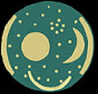 1) Zunächst waren auf er Scheibe 32 kleine runde goldene Kreise (heute sind 30 sichtbar), eine große runde Platte, und eine große halbmondförmige Platte befestigt. Die kreisförmige Platte wird entweder als Sonne oder als Vollmond, die Halbmond Form als die Mondsichel oder als Sonnen- oder Mond-Finsternis gedeutet. Die Punkte werden als Sterne gedeutet, die Gruppe von sieben Punkten sollte wahrscheinlich die Plejaden darstellen.