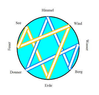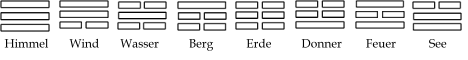 Die acht Trigramme in der Reihenfolge des frühen Himmels, wie sie in dem Diagramm oben angeordnet sind.